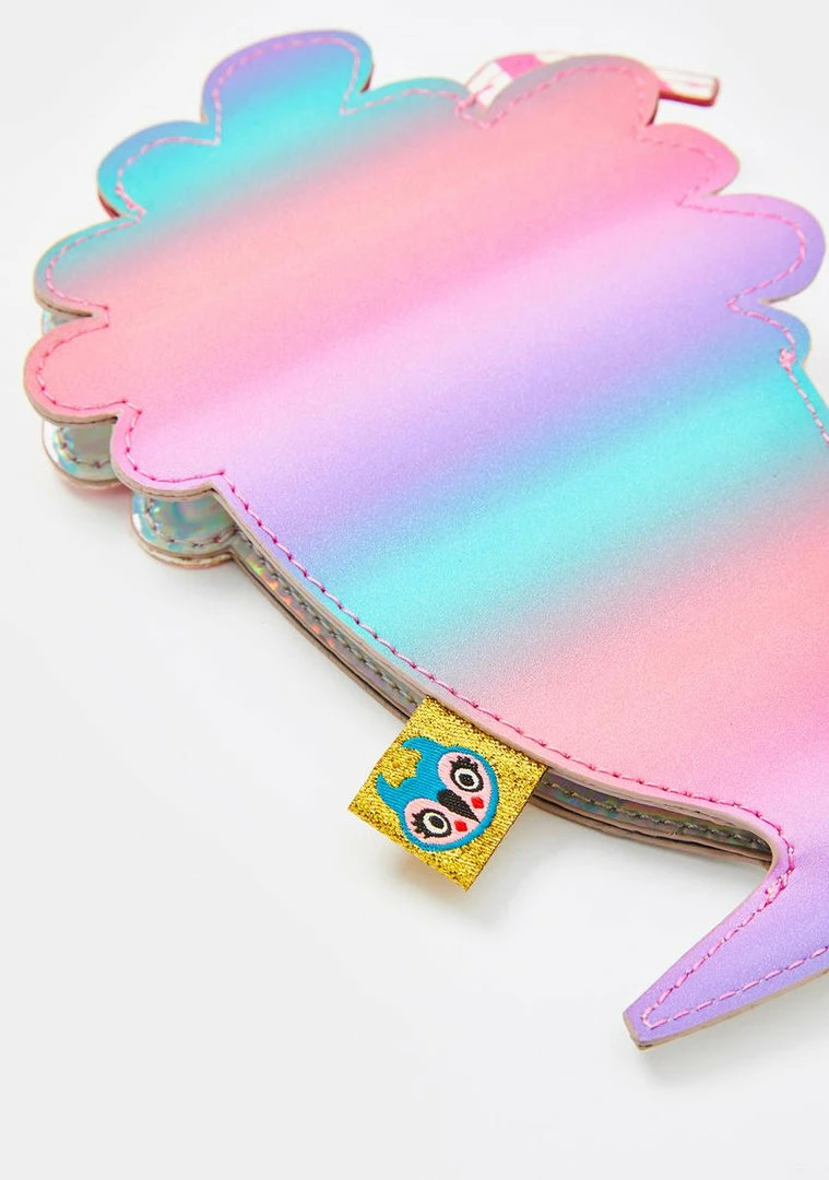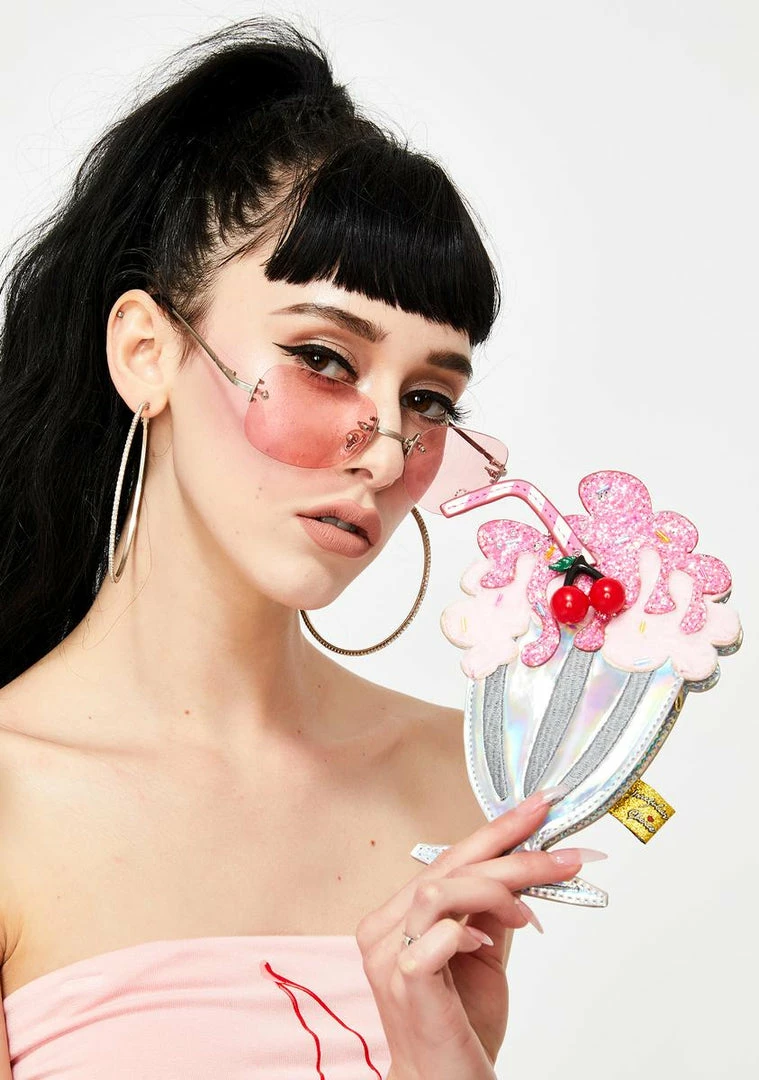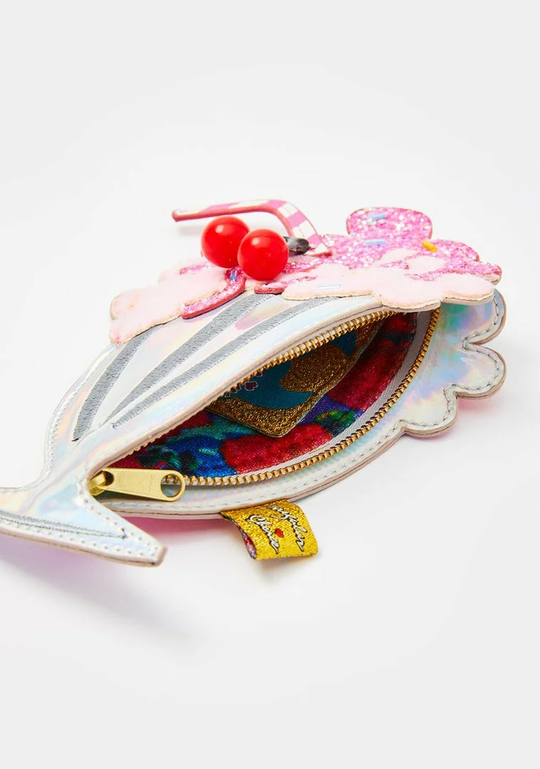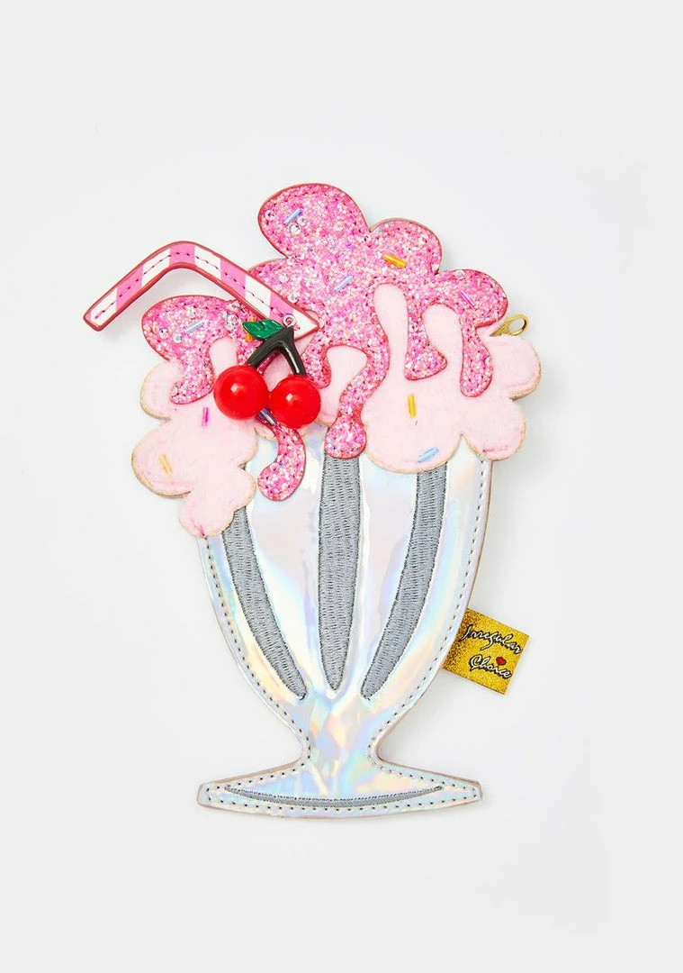 cuz your milkshake brings all the boyz to the yard! Quench yer thirst with this sweet milkshake-shaped coin purse that has an iridescent construction with glitter N’ faux fur details, a lil cherry charm, and a side zip closure.