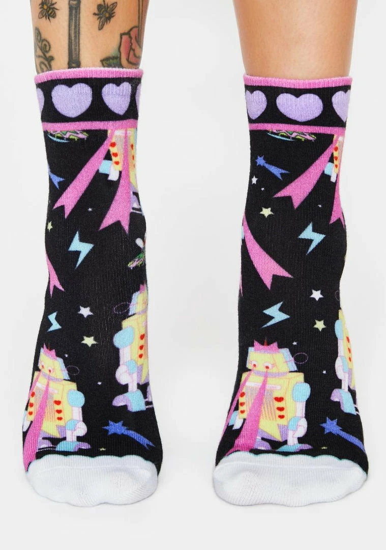 gotcha turninΓ’ΒΒ up in outer space! Get freaky in these galactic socks that have robots NΓ’ΒΒ stars all ova, brand logos on the bottom and a stretchy ribbed knit.